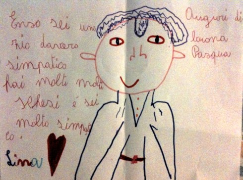 Il fatto è che i “piccoli”, fino a quando noi grandi non li roviniamo, sono come il Piccolo Principe, vedono con il cuore e non cogli occhi, ed ecco la letterina che Lina mi ha fatto avere attraverso Rossana e Castrese, i suoi zii.